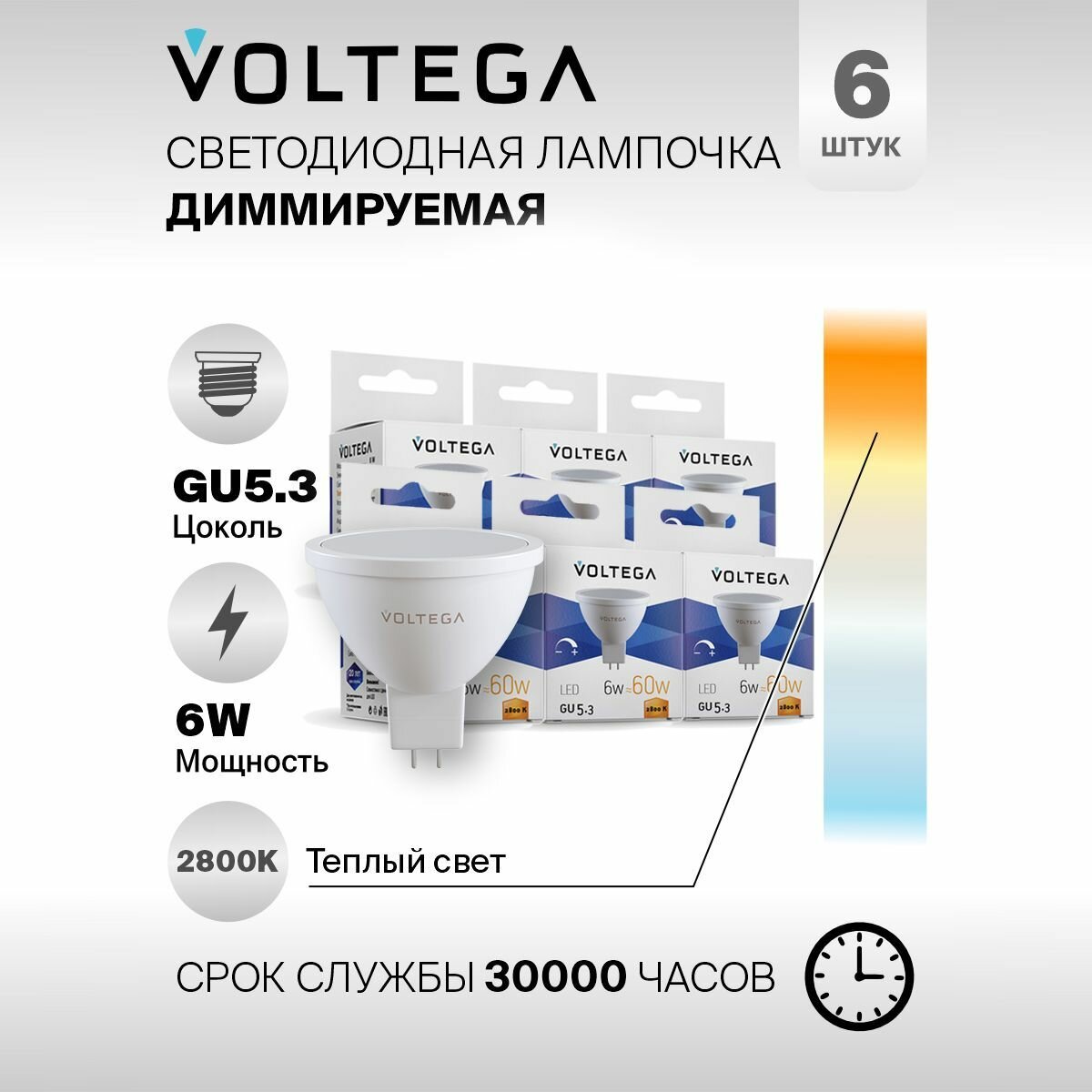 Лампочка светодиодная GU5.3 форма софит 6W теплый свет Voltega Simple MR16 2800K 1 штука диммируемая