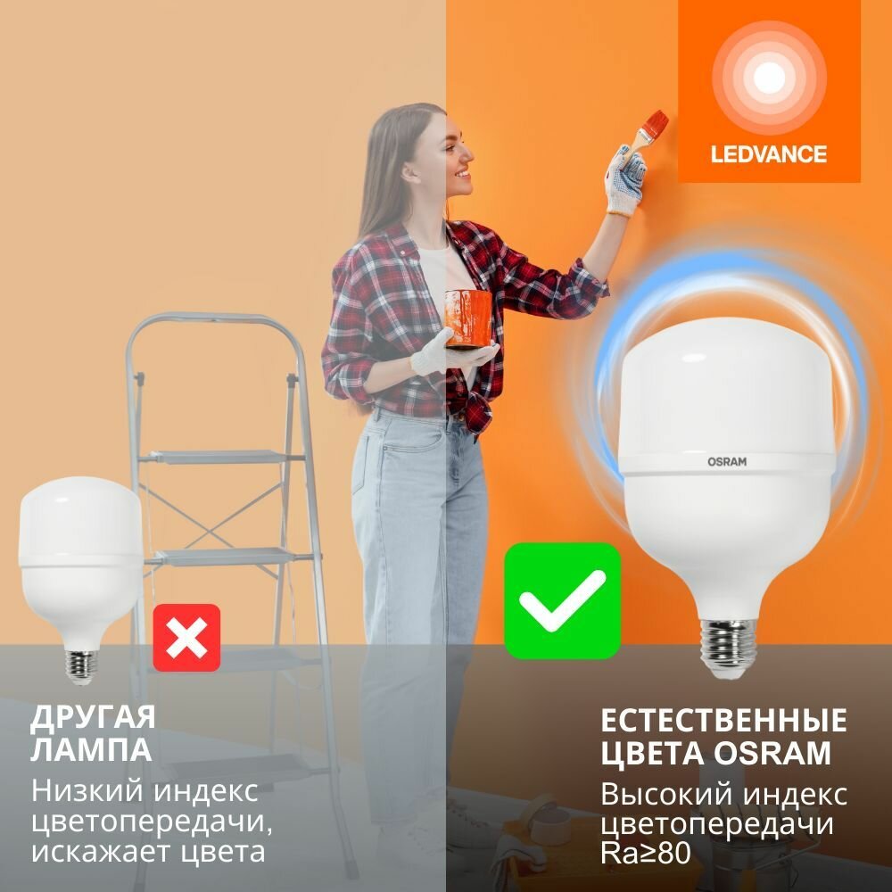 СохранитьМощная лампа светодиодная 30Вт Е27 OSRAM LED STAR HW, 6500К холодный белый свет, 3000лм, колба Т матовая пластик интересное: