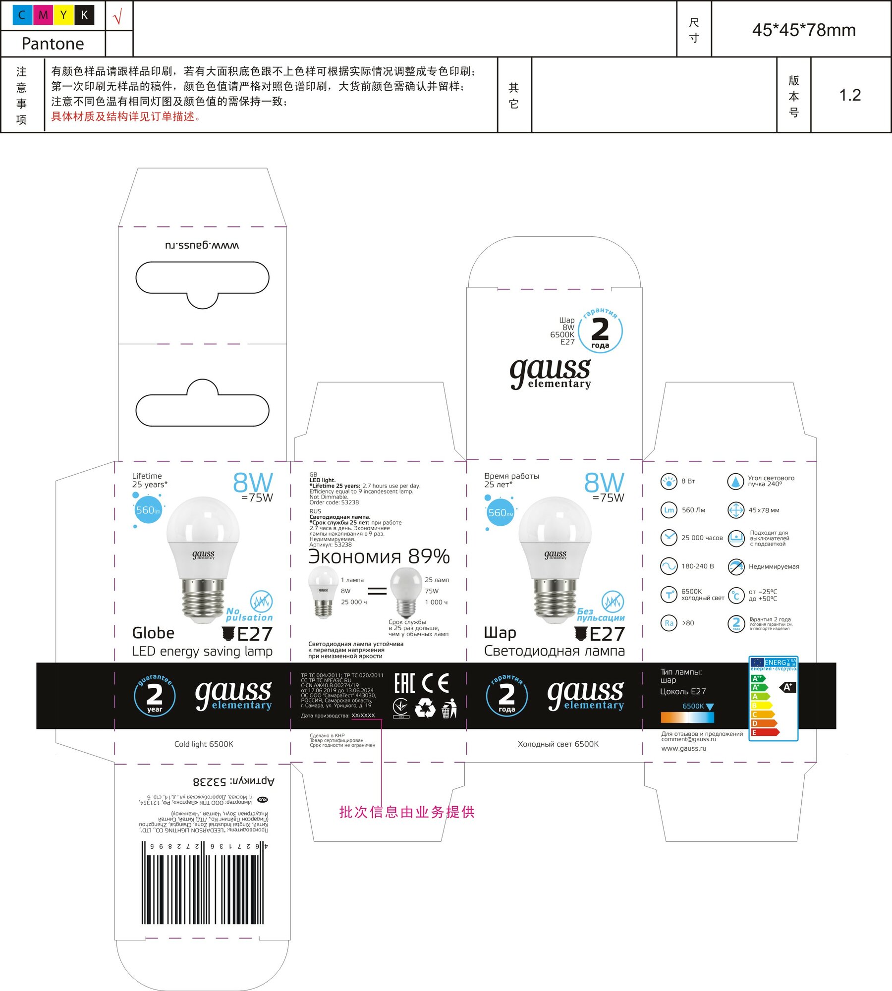 Упаковка светодиодных ламп 10 шт. gauss 53216, E27, G45, 6Вт, 3000 К