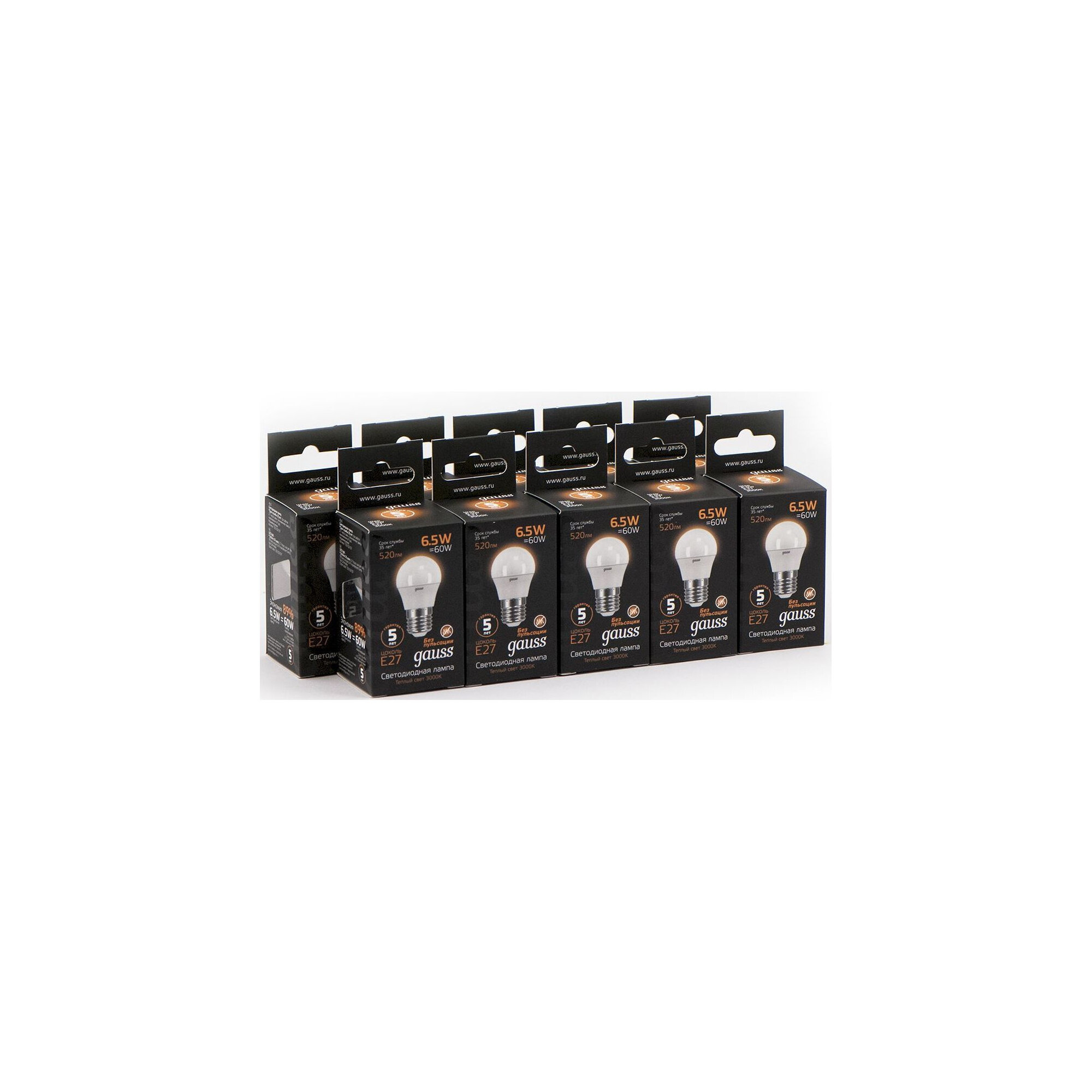 Набор из 10 штук Лампа Gauss Шар 6.5W 520lm 3000K E27 LED 1/10/100