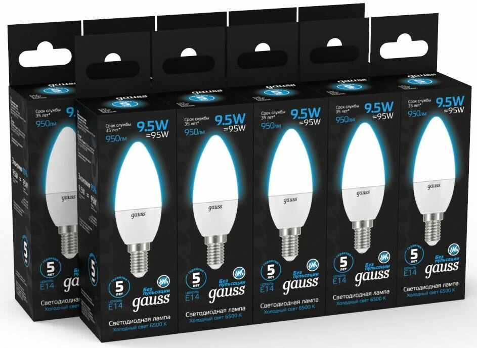 Упаковка ламп LED GAUSS E14, свеча, 9.5Вт, 103101310, 10 шт.