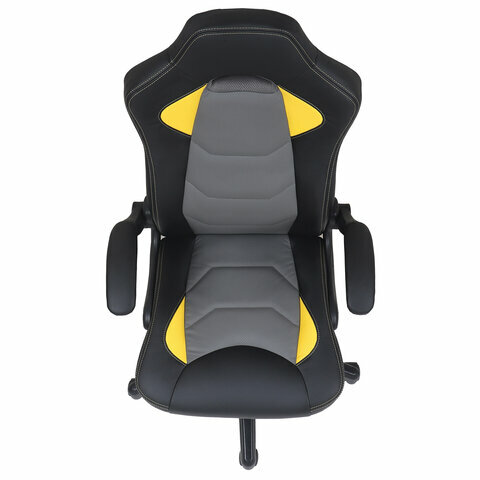 Кресло компьютерное BRABIX "Skill GM-005", откидные подлокотники, экокожа, черное/желтое, 532494