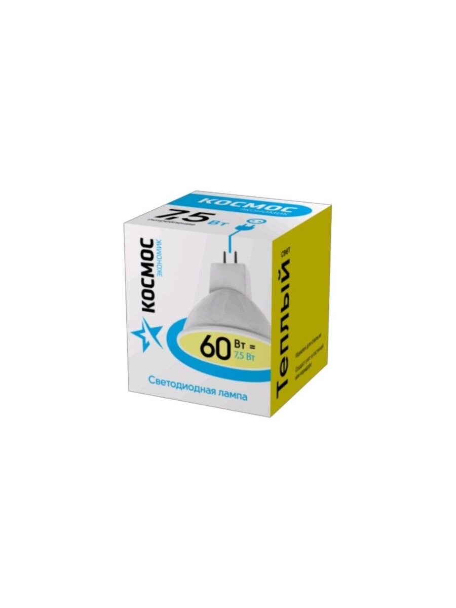Сохранить(10 шт.) Светодиодная лампочка Космос MR16 GU5.3 220V 7,5W (7W) (590lm) 3000K 2K матов. 45x50 LkecLED7.5wJCDRC30 Нейтральный белый. Цоколь GU5.3 интересное:
