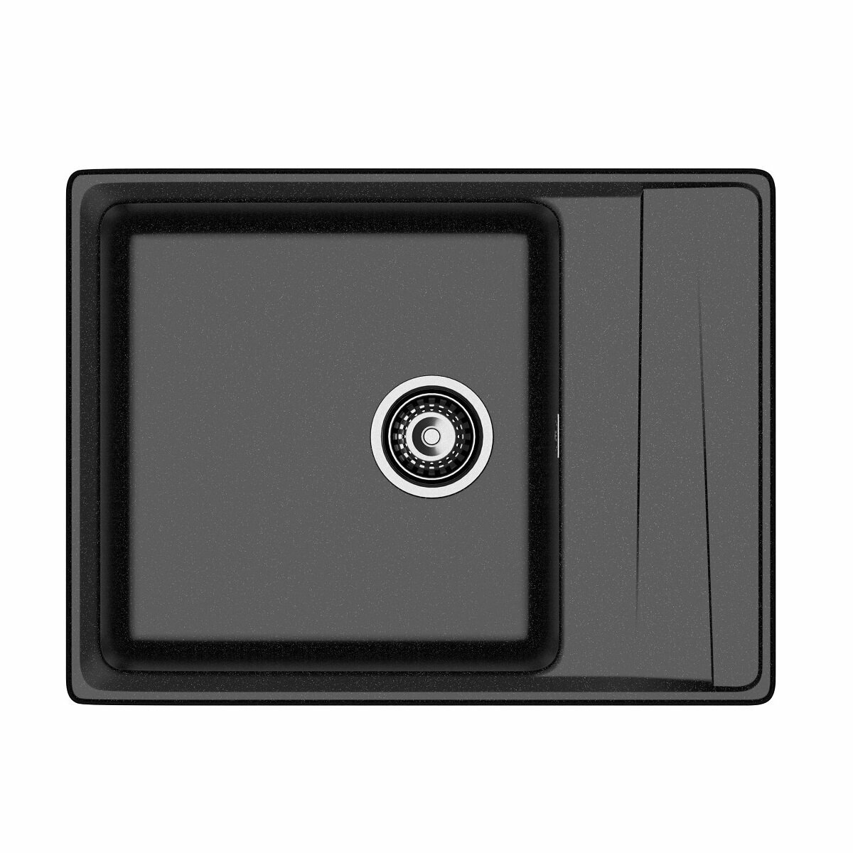 Кухонная мраморная мойка GranFest LEVEL GF-LV-660 L, прямоугольная, врезная, оборачиваемая, 660*500 мм, цвет черный/Раковина для кухни