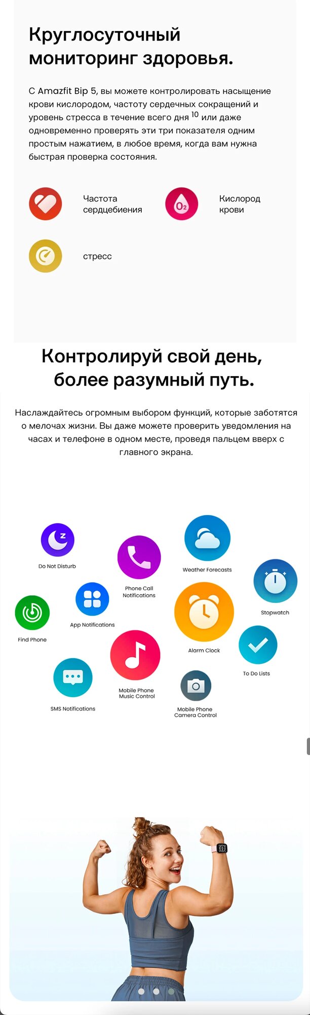 СохранитьУмные часы Amazfit Bip 5 с мониторингом сна, Cream White, BIP 5 интересное: