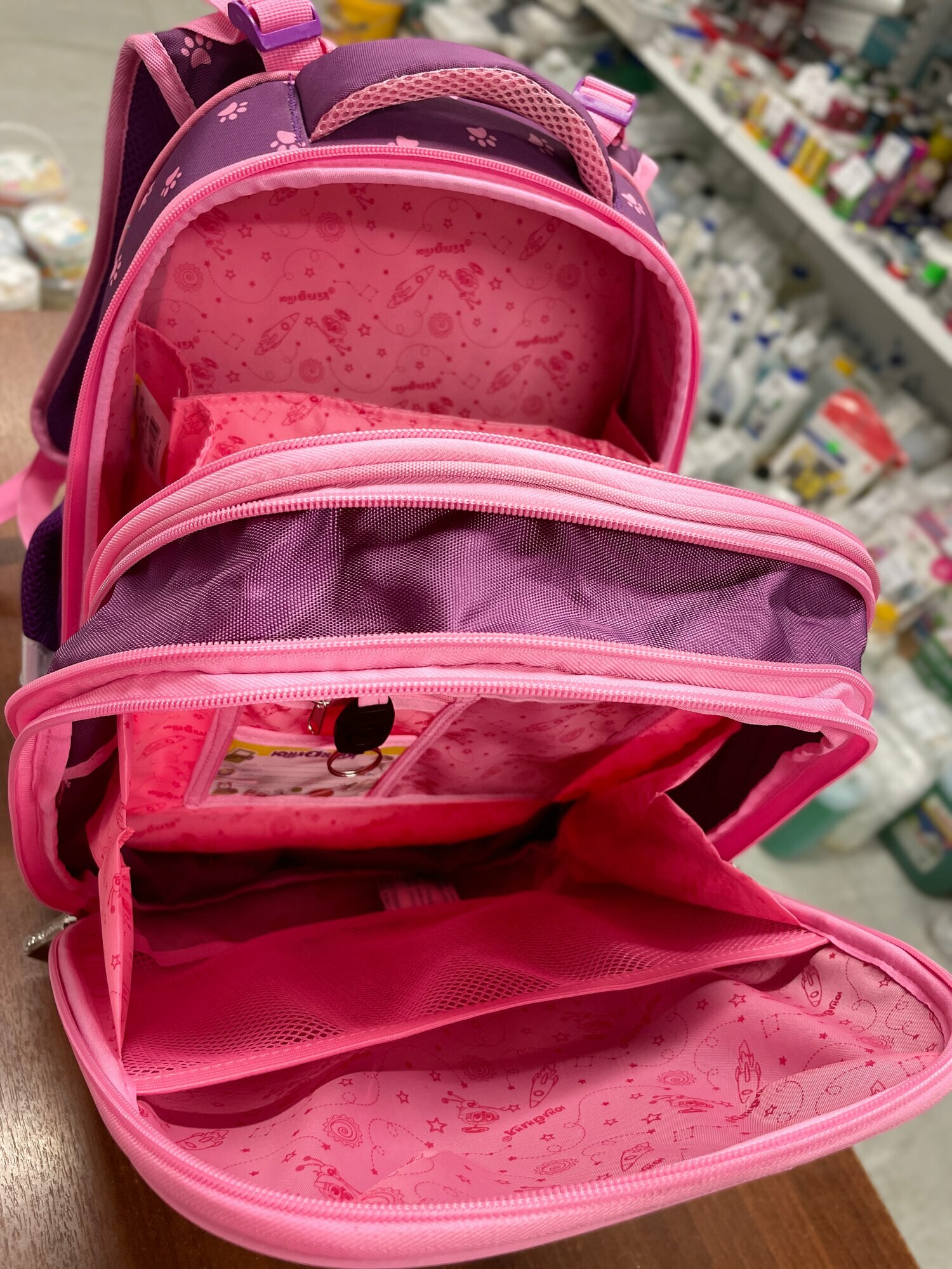 | Плюсы: | как раз по размеру будущей первоклашке - не висит, лямки не давят. сам по себе не тяжёлый. ребёнок счастлив! |