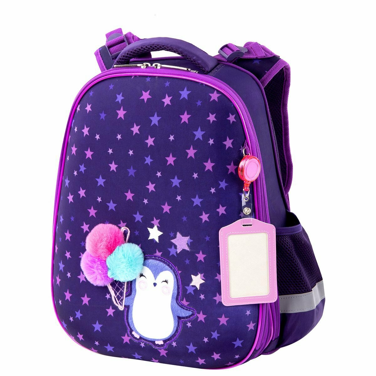 Ранец / рюкзак / портфель школьный для девочки первоклассницы Юнландия Extra, с дополнительным объемом, Penguin, 38х29х18 см