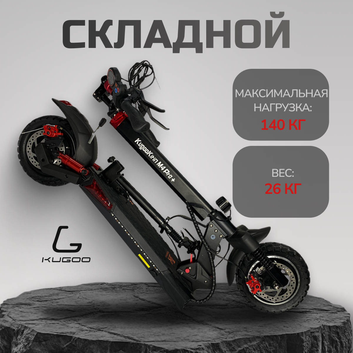 Купить Электросамокат KUGOO Kirin M4 Pro Plus 2024, складной, красный, чёрный, звуковой сигнал