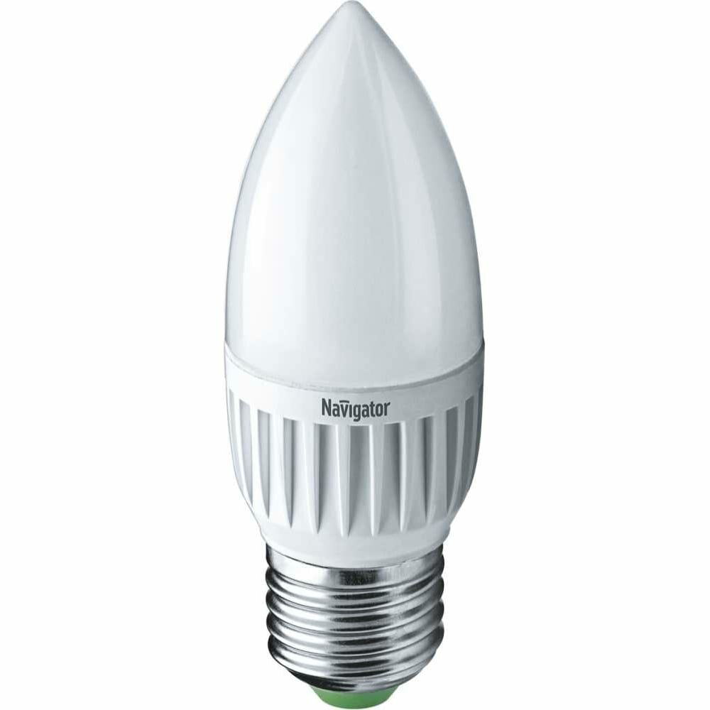 (7 шт.) Светодиодная лампочка Navigator C37 свеча, мощность 5Вт, напряжение питания 230В, цветовая температура 2700K, теплый белый свет, цоколь E27, размер 37х100 мм, NLL-P-C37-5-230-2.7K-E27-FR