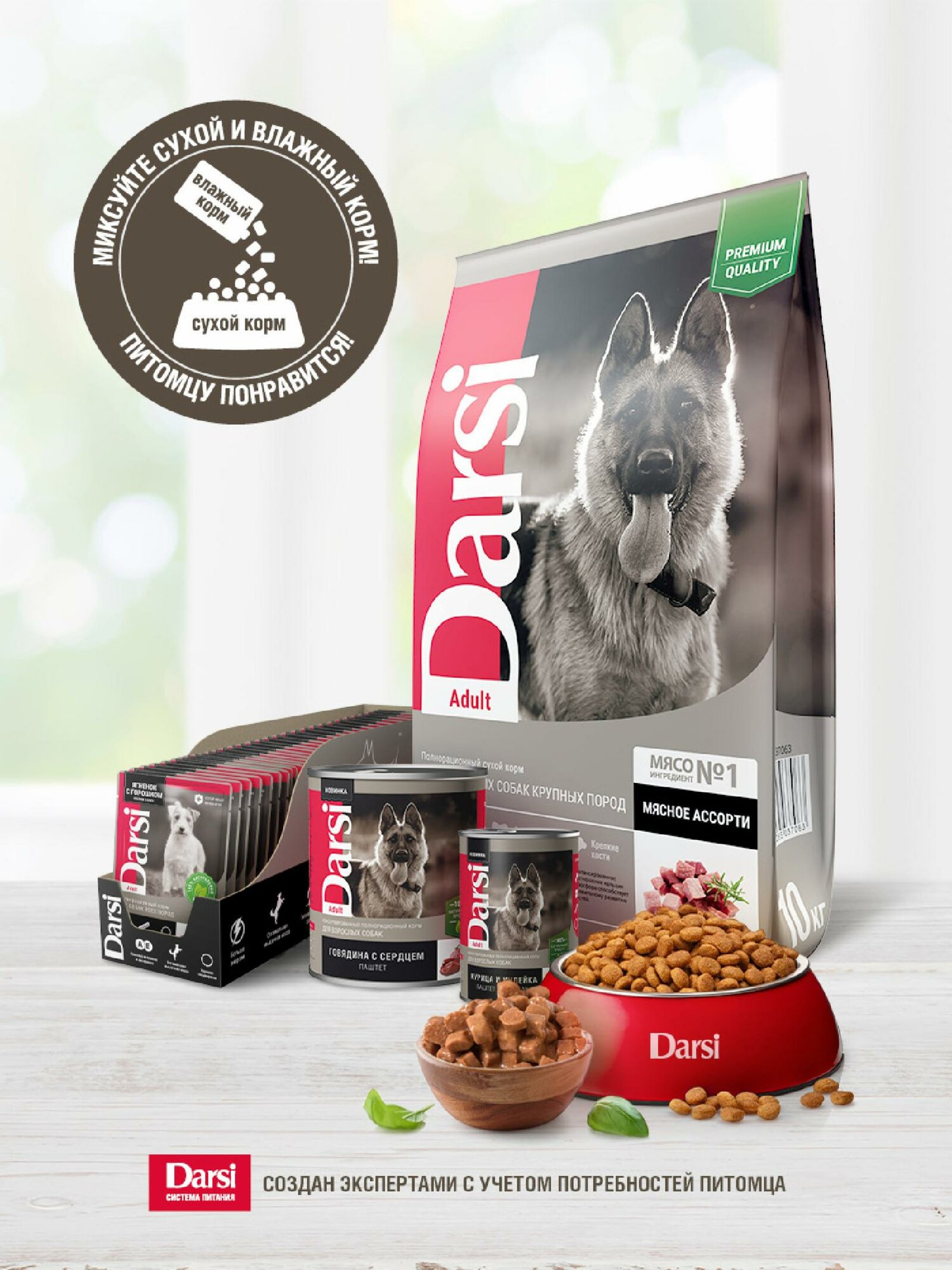 Корм сухой Darsi для собак, крупных пород, Adult Мясное ассорти 10 кг