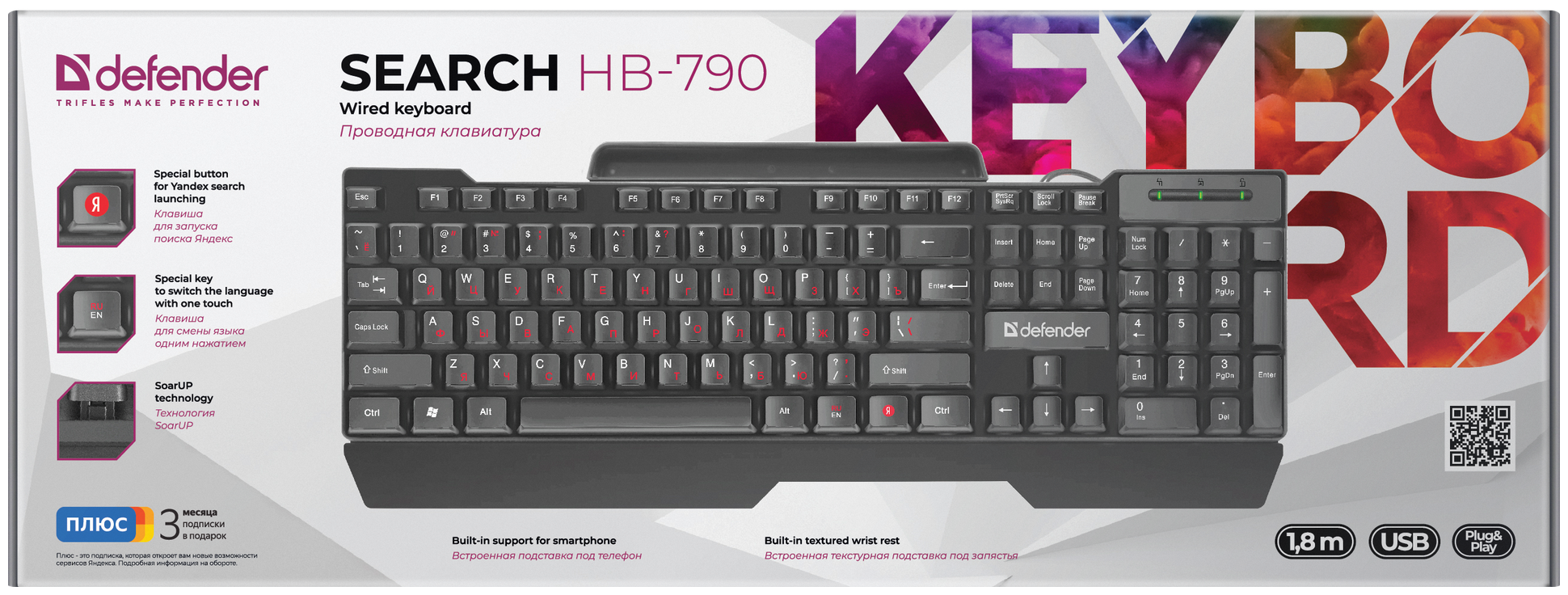 Клавиатура DEFENDER Search HB-790 RU, USB, Черный