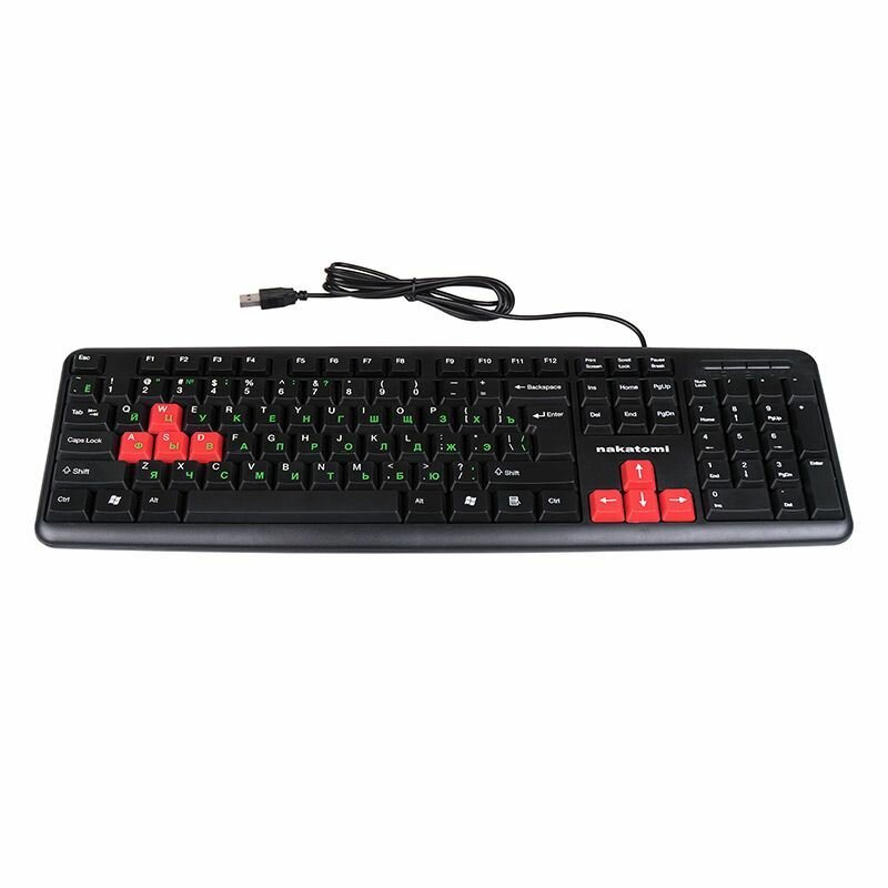 Клавиатура Nakatomi KN-02U Navigator black-red, стандартная, красные игровые клавиши, чёрная