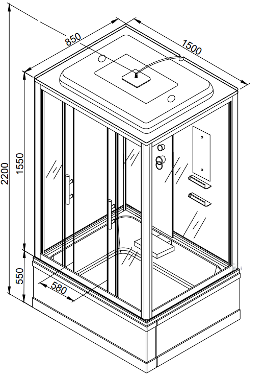 Душевая бокс DTO EM ЕМ4515 с гидромассажем и электрикой 150х85 стекло матовое, профиль хром интересное: