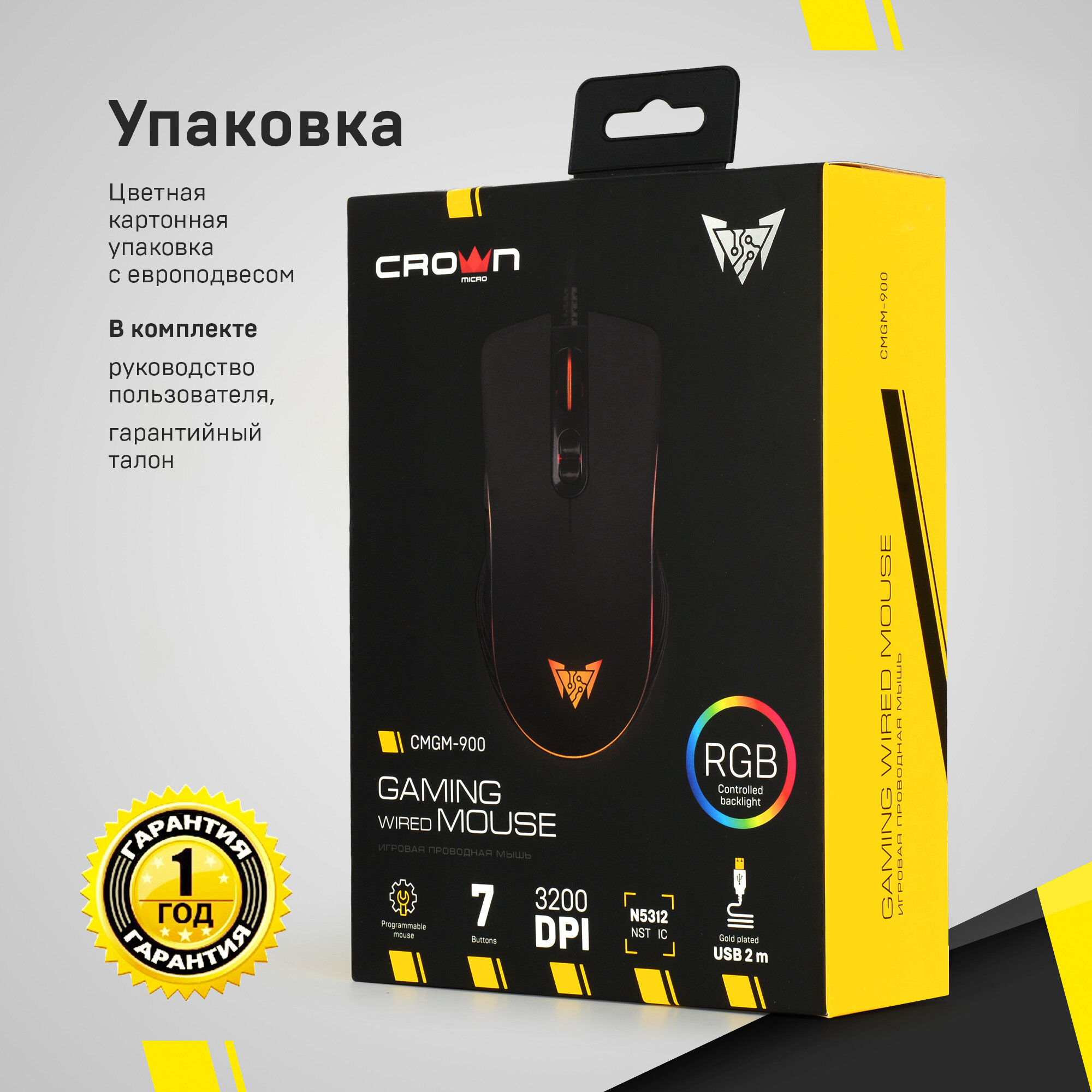 Игровая мышь CROWN MICRO "CMGM-900", RGB-подсветка, 3200 DPI интересное: