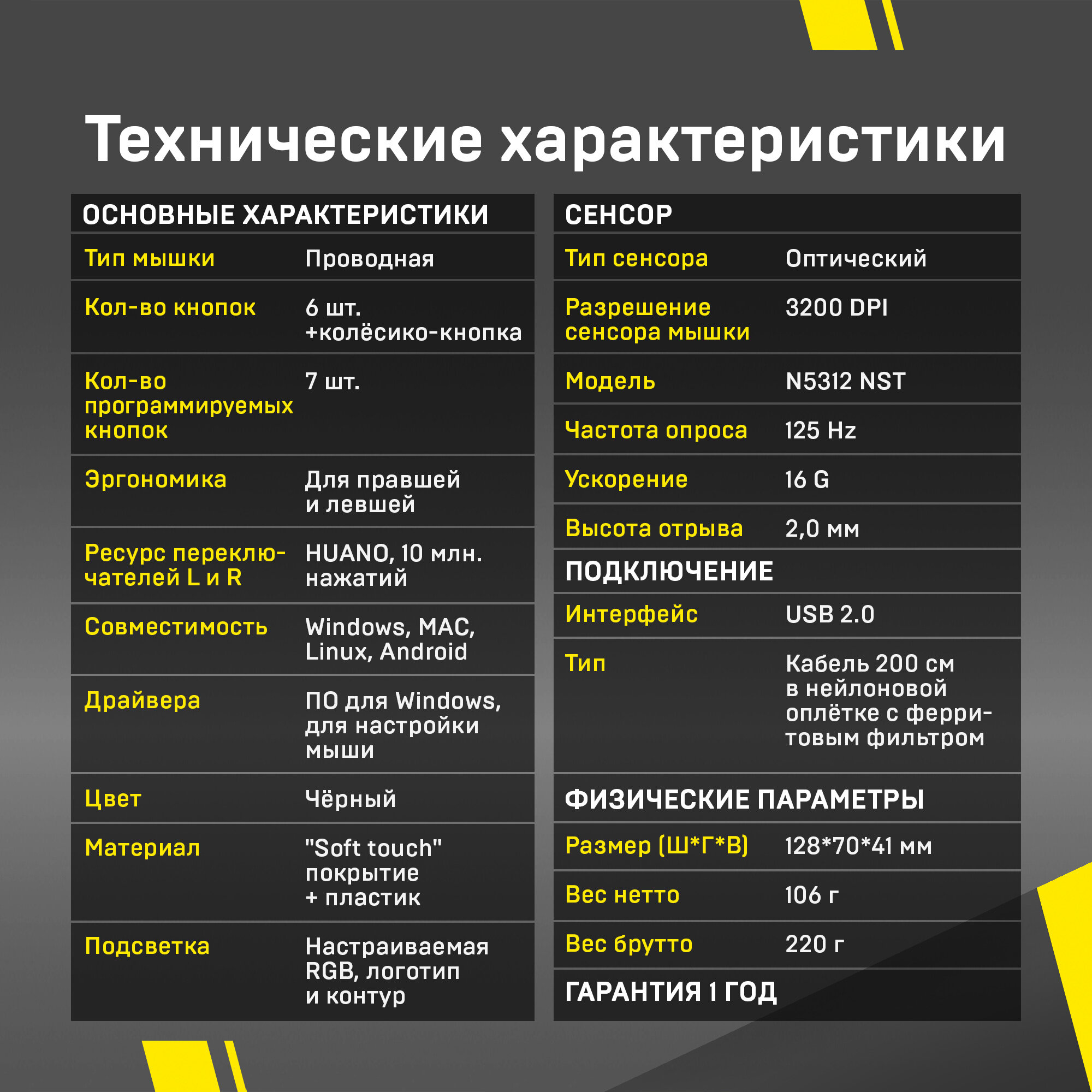 | Дополнительная информация | переключатели HUANO, 10 млн. нажатий; "Soft touch" покрытие; кабель в нейлоновой оплётке с ферритовым фильтром |