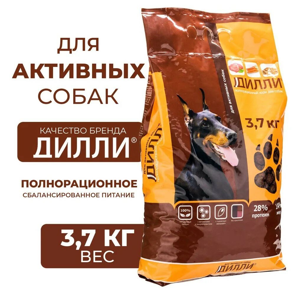Сухой корм для активных собак полнорационный Дилли, 3,7 кг