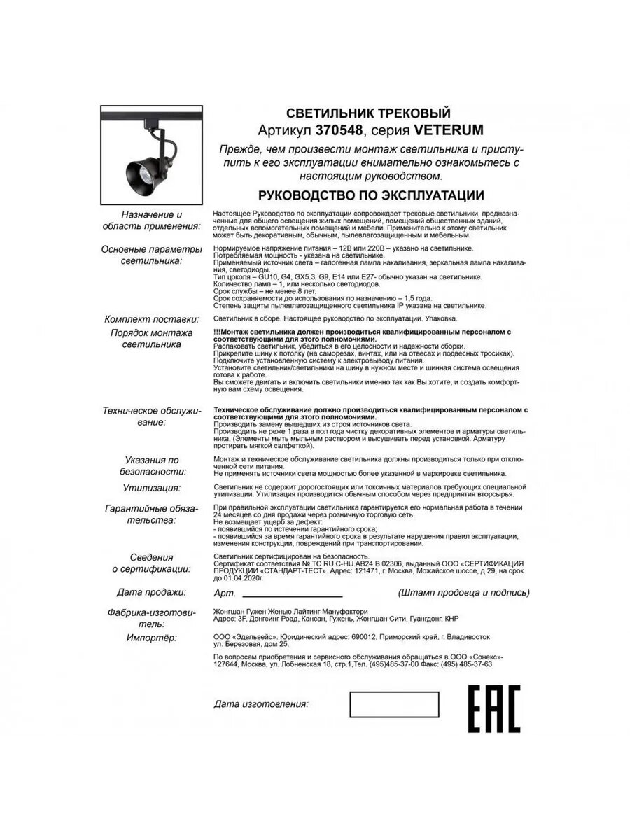 Ниже Вы можете прочитать отзывы на Светильник трековый Veterum 370548 черный, ознакомится с подробными характеристиками, посмотреть интересные обзоры и фотографии на Светильник трековый Veterum 370548 черный.