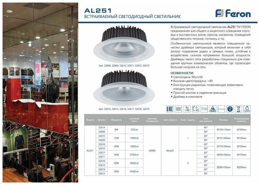 | Комплектация | Встраиваемые светильники Feron 32610 |