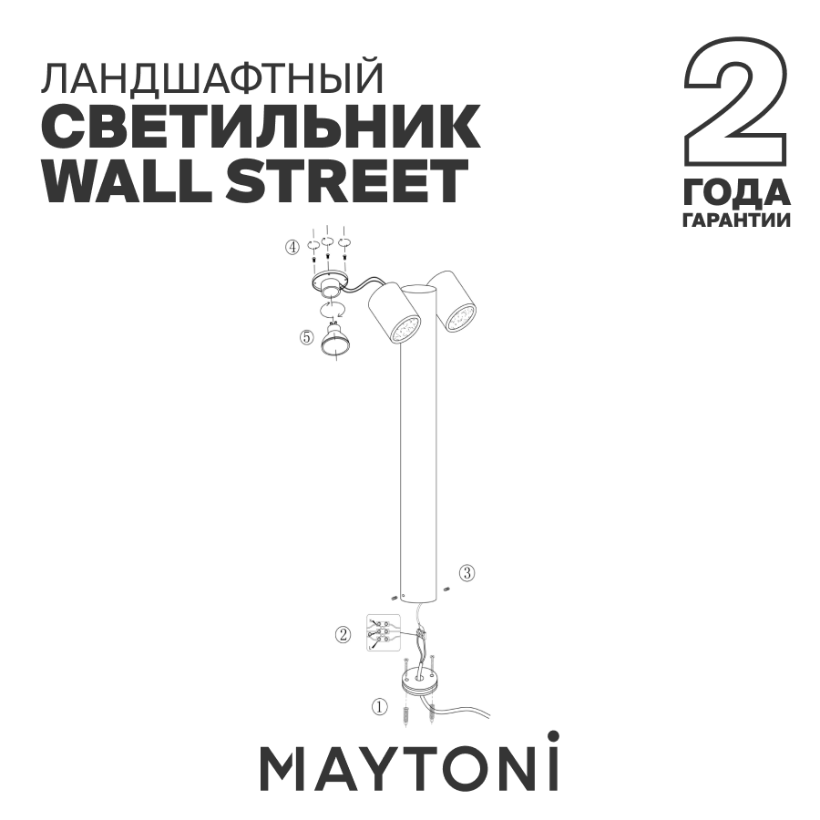 Уличный наземный светильник Maytoni Wall Street O010FL-01B, GU10, кол-во ламп:1шт., Черный