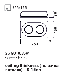 Встраиваемый светильник ArteLamp Врезной Invisible A9214PL-2WH, GU10, 70 Вт, металл, гипс, белый