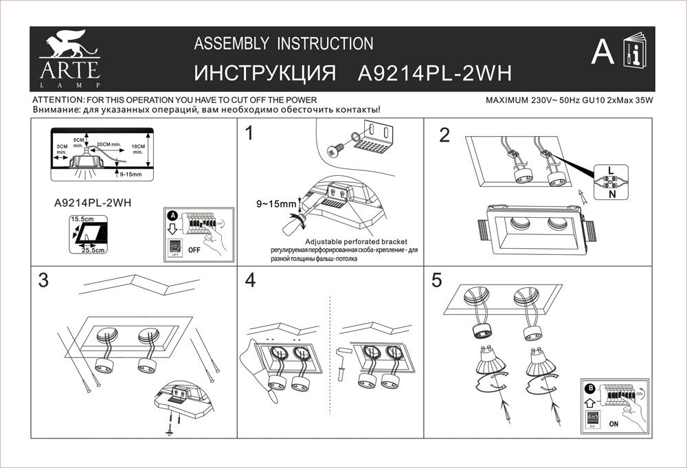 Встраиваемый светильник ARTE Lamp A9214PL-2WH