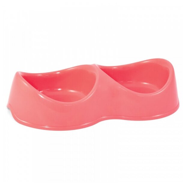 Миска пластиковая двойная "Бисквит", коралловая, 2*200мл, 1 шт