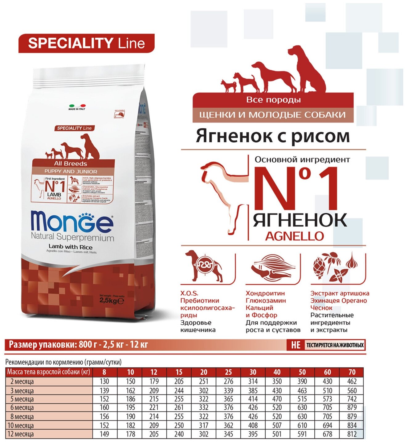 Ниже Вы можете прочитать отзывы на Сухой корм для щенков всех пород Monge Speciality line, ягненок с рисом и картофелем 1 уп. х 1 шт. х 2500 г, ознакомится с подробными характеристиками, посмотреть интересные обзоры и фотографии на Сухой корм для щенков всех пород Monge Speciality line, ягненок с рисом и картофелем 1 уп. х 1 шт. х 2500 г.