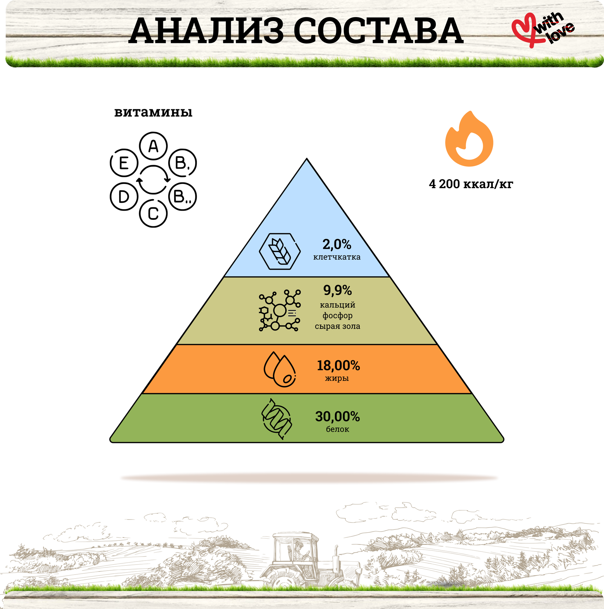 | Энергетическая ценность | 4200 ккал/кг |