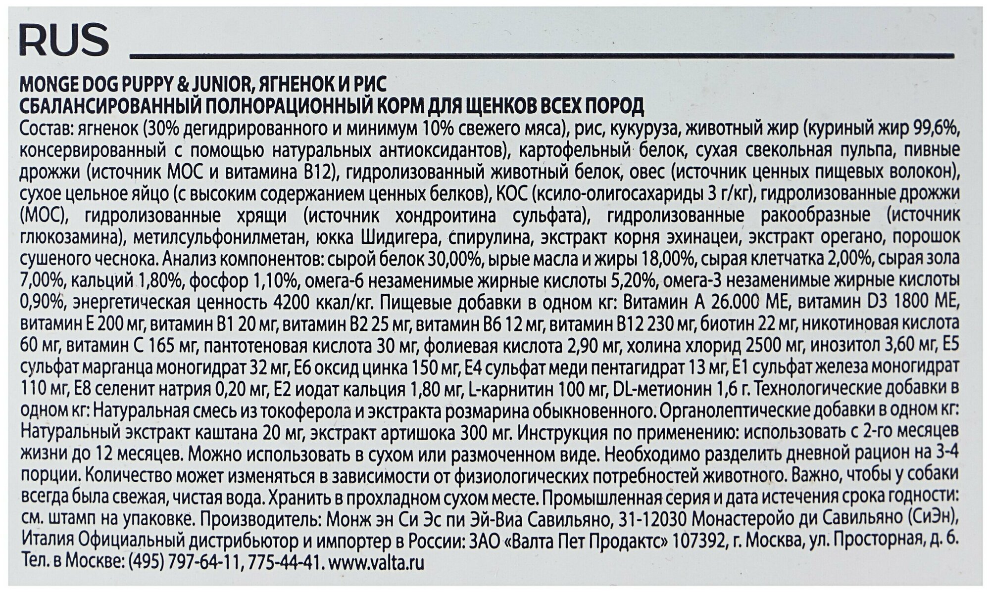 Корм для щенков Monge Puppy&Junior с ягненком и рисом