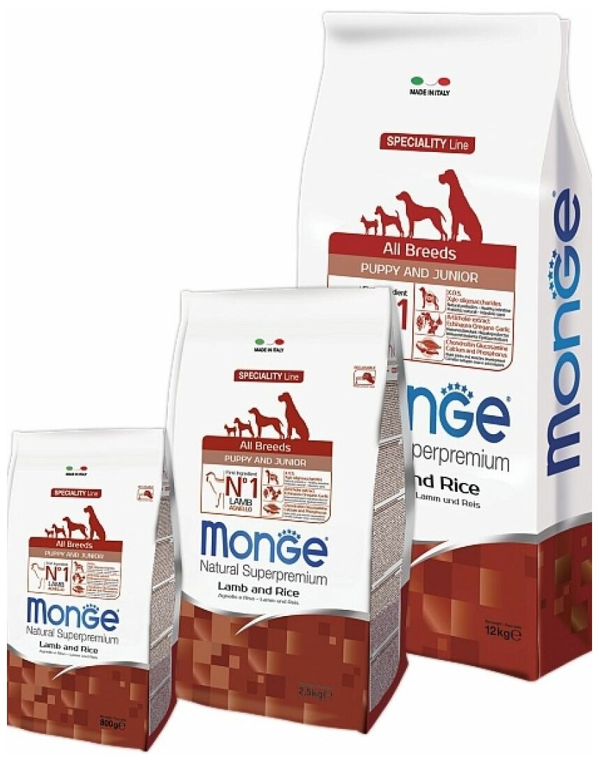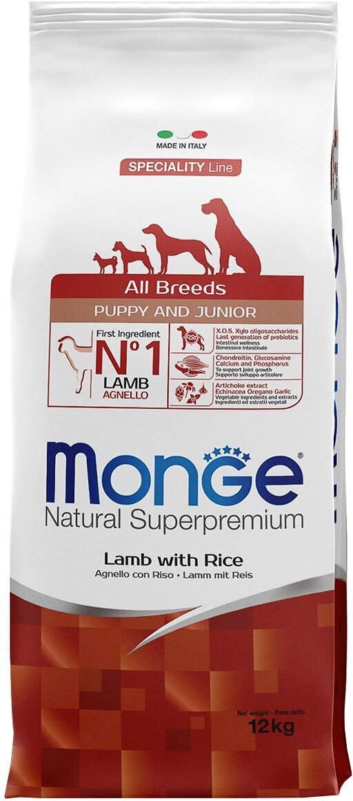 Корм Monge Speciality Line Puppy And Junior All Breeds для щенков всех пород, с ягненком и рисом 12кг