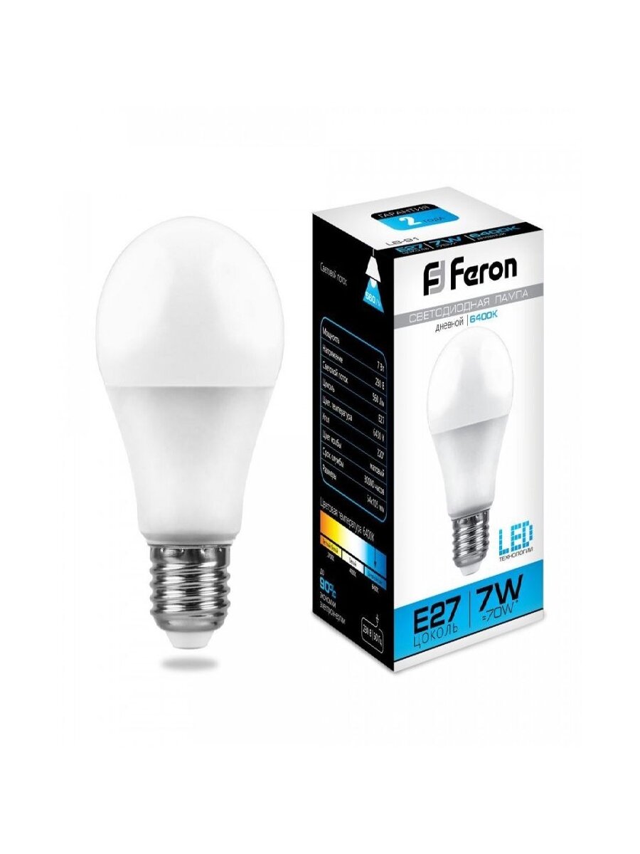 Ниже Вы можете прочитать отзывы на (5 шт.) Светодиодная лампочка Feron ЛОН A55 E27 7W(560lm) 6400K 6K матовая 105x55, LB-91 25446 Холодный белый. Цоколь E27, ознакомится с подробными характеристиками, посмотреть интересные обзоры и фотографии на (5 шт.) Светодиодная лампочка Feron ЛОН A55 E27 7W(560lm) 6400K 6K матовая 105x55, LB-91 25446 Холодный белый. Цоколь E27.