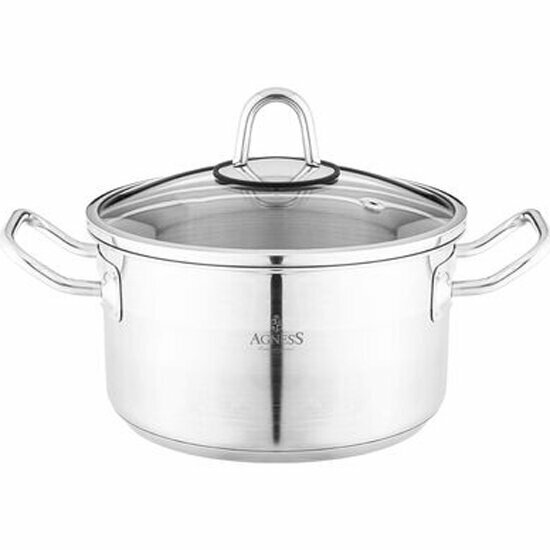 Кастрюля с крышкой Agness 20х10см, 2.8л, нержавеющая сталь, стекло