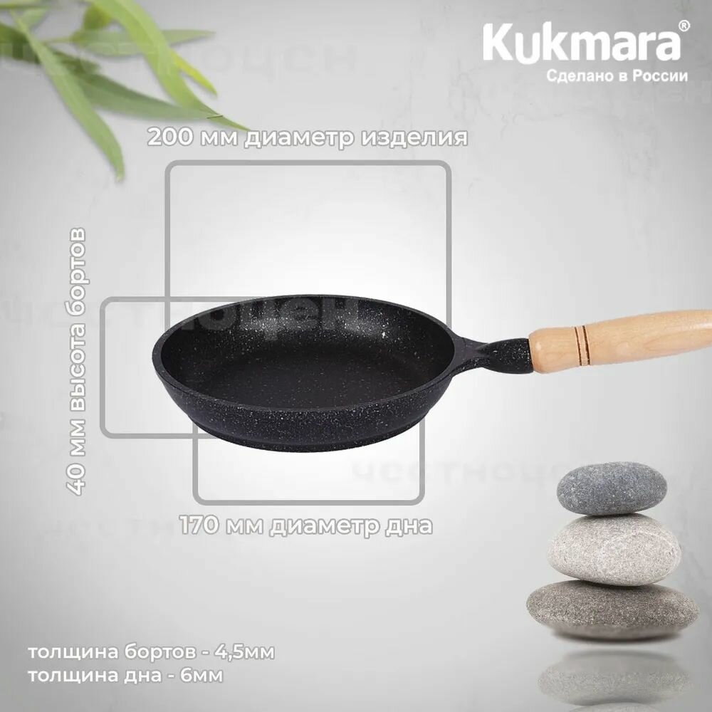 Купить Сковорода 200/40мм с деревянной ручкой, АП (темный мрамор) "Kukmara" смт200а