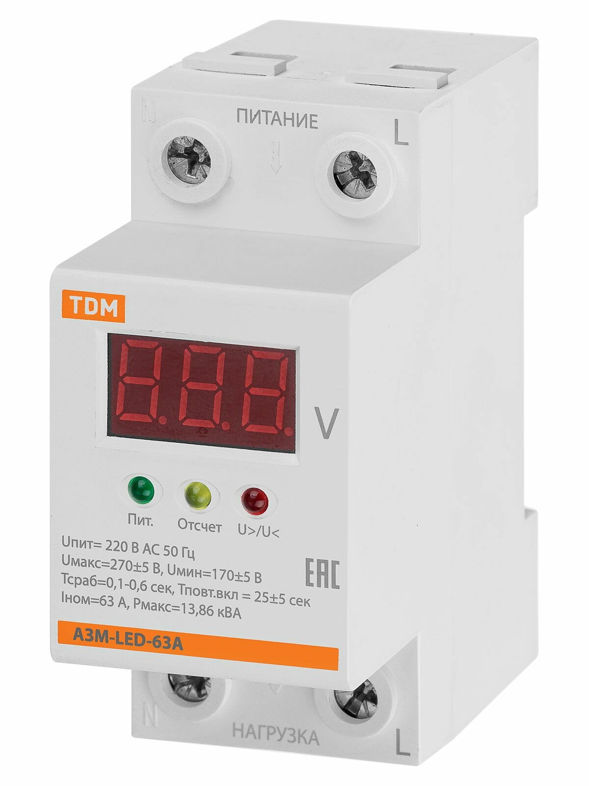 Реле напряжения 1ф серии АЗМ с LED-дисплеем 63А-220В TDM