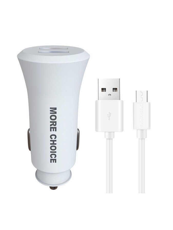 Автомобильное зарядное устройство 2USB 2.4A с кабелем micro USB More choice AC23m White