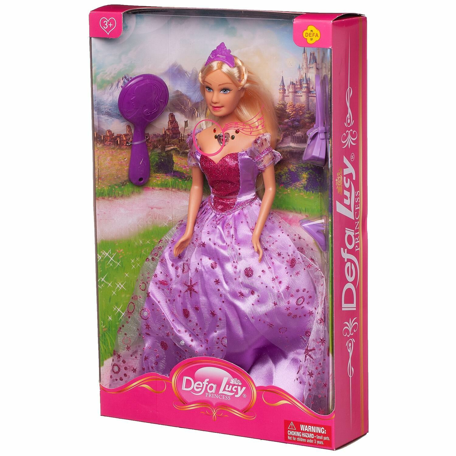 Купить Кукла DEFA Lucy "Принцесса", в фиолетовом белом платье, с игровыми предметами, высота 29 см (8239d/фиолетовое)