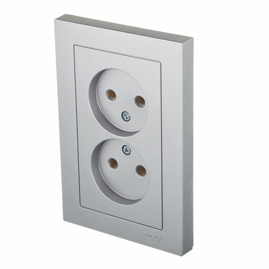 Розетка Schneider Electric AtlasDesign двойная без заземления алюминий (комплект из 2 шт)