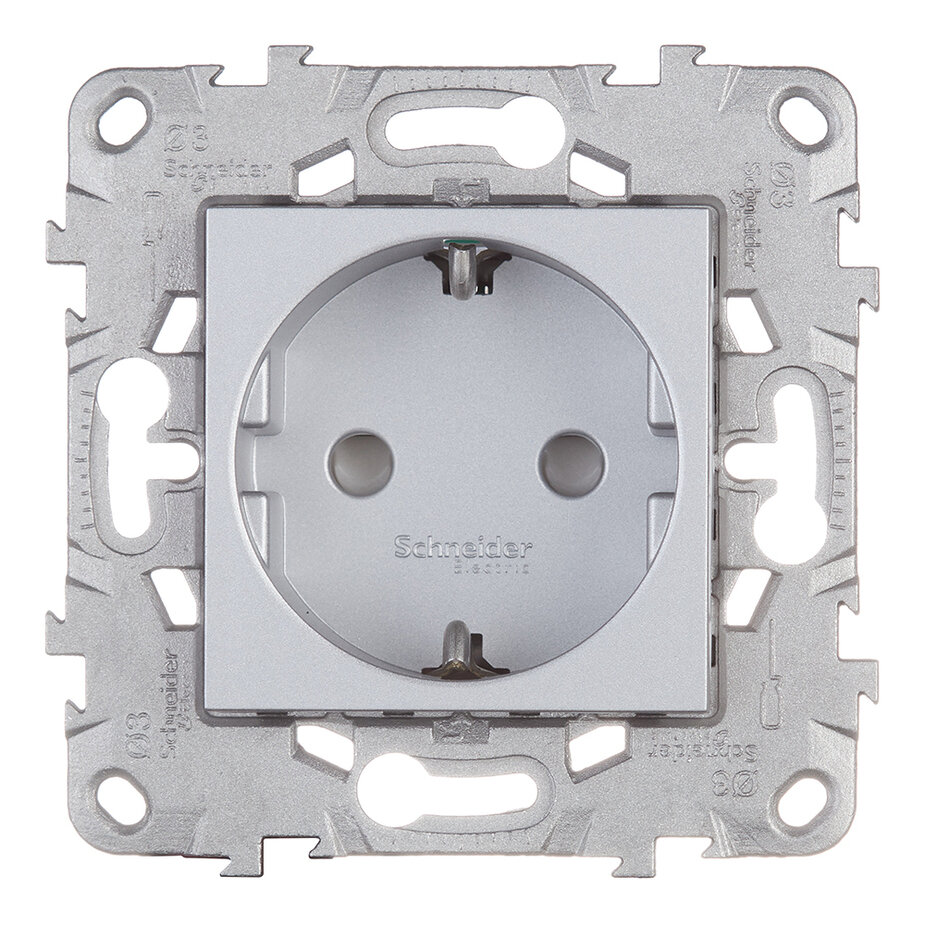 Розетка Schneider Electric NU505730, 16 А, с защитной шторкой, с заземлением, алюминиевый