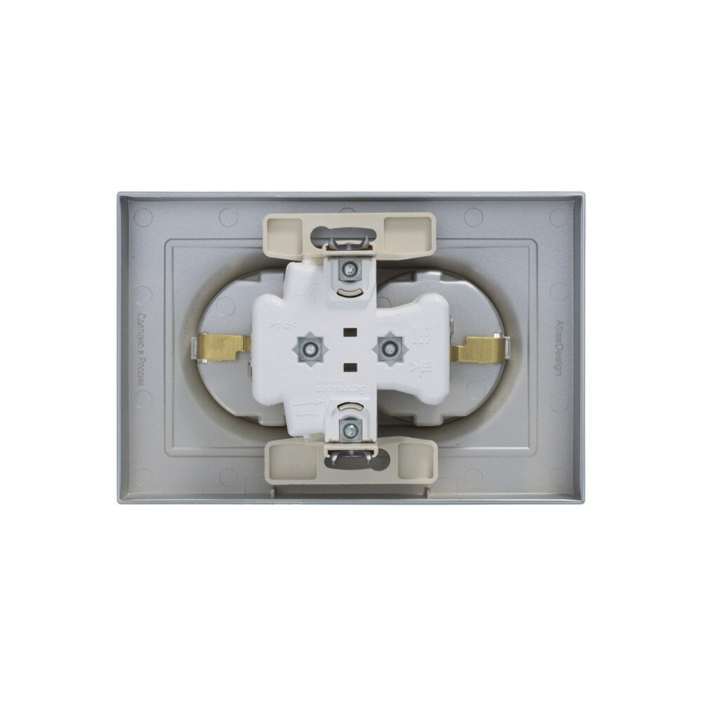 Розетка с рамкой Schneider Electric Atlas Design ATN000324 двойная скрытая установка алюминий с заземлением