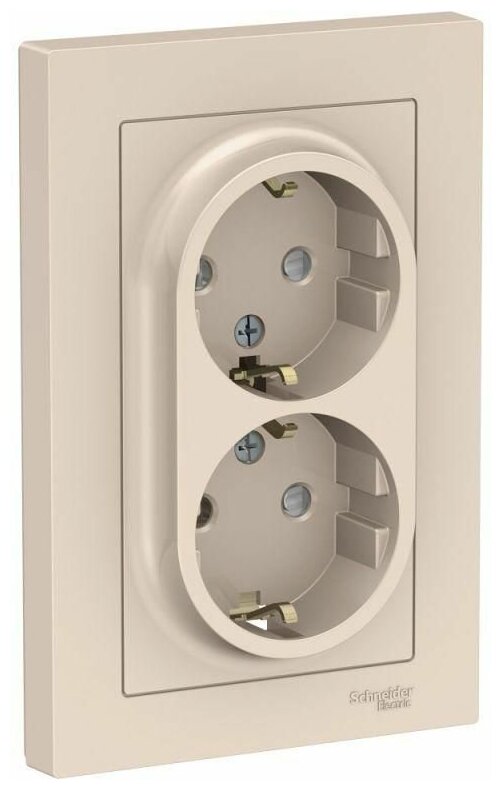 Розетка двойная встраиваемая Schneider Electric Atlasdesign, с/з, 16 А, IP20, бежевая