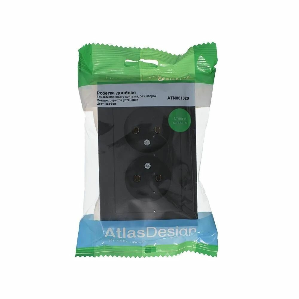 Купить Розетка двойная без заземления Systeme Electric Atlasdesign, в сборе 2х2P 16А, карбон, комплект 2 шт, ATN001020/2
