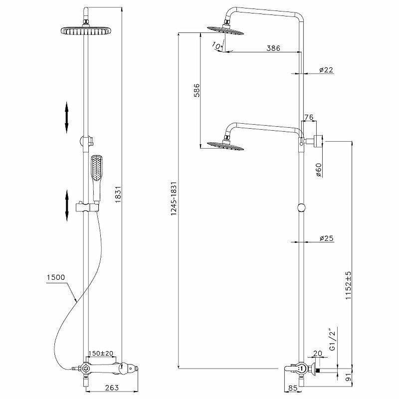 | Дополнительная информация | цвет: черный/золото; высота стойки для душа: 1831 мм; длина верхнего душа: 220 мм; ширина верхнего душа: 250 мм |