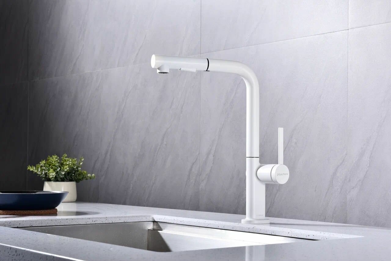 Смеситель для кухни Paulmark Dosse с выдвижной лейкой белый матовый Do214418-431
