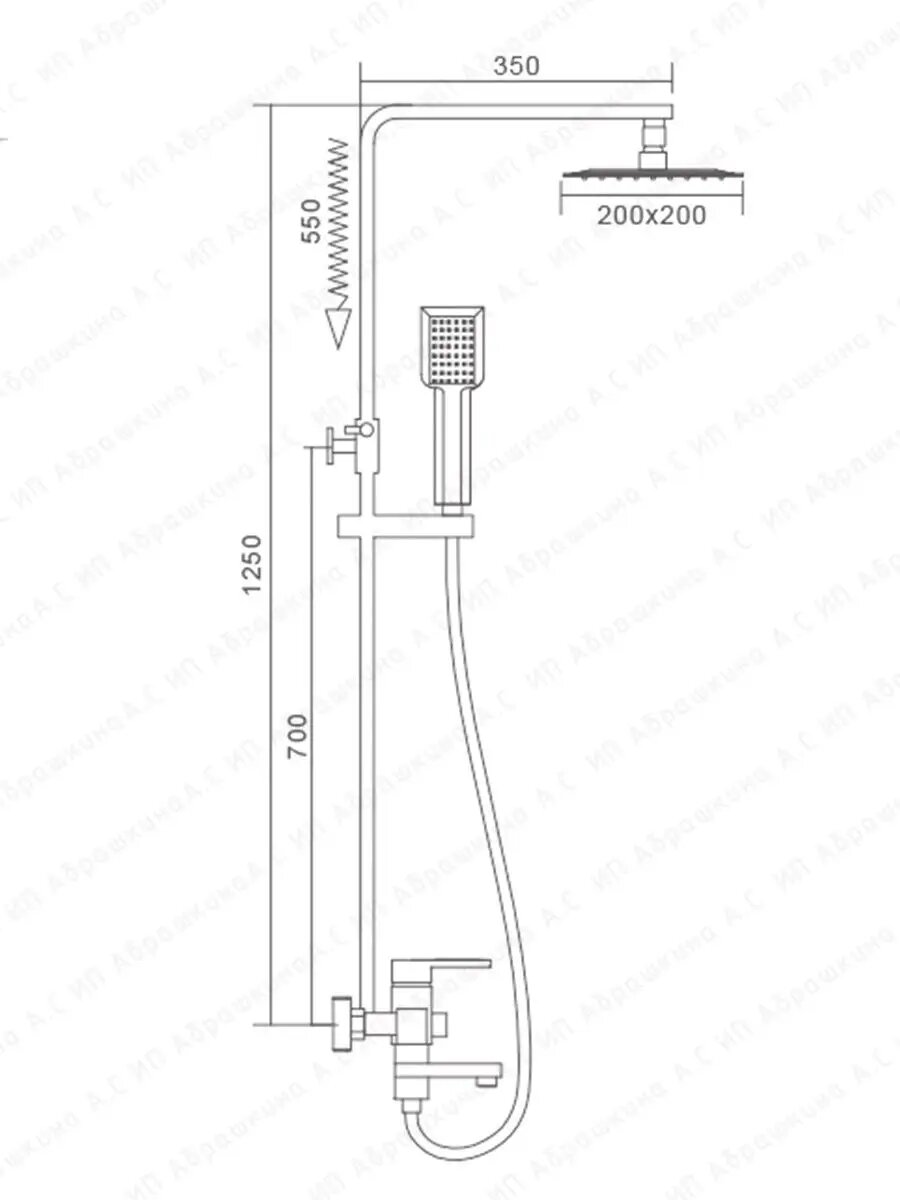 | Дополнительная информация | высота стойки для душа: 1250 мм; длина верхнего душа: 200 мм; ширина верхнего душа: 200 мм; покрытие сатиновое; переключатель на душ 360; излив поворотный 180 |