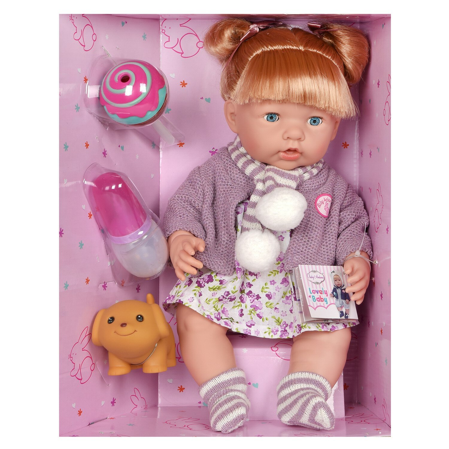 Пупс-кукла Baby Ardana, 40см, в платье и серо-розовой кофте, в наборе с аксессуарами, в коробке - ABtoys [WJ-C0018]