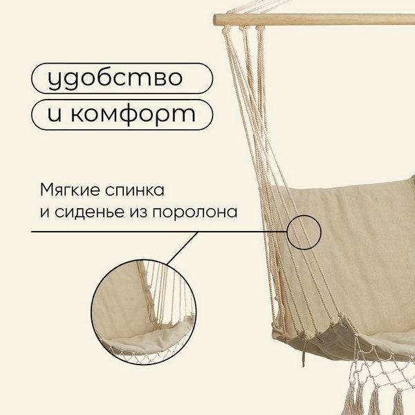 Гамак-кресло подвесное, 96x50 см, бежевое интересное:
