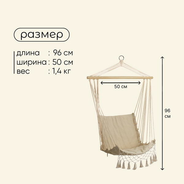 Гамак-кресло maclay, подвесное, 96 х 50 см, цвет бежевый