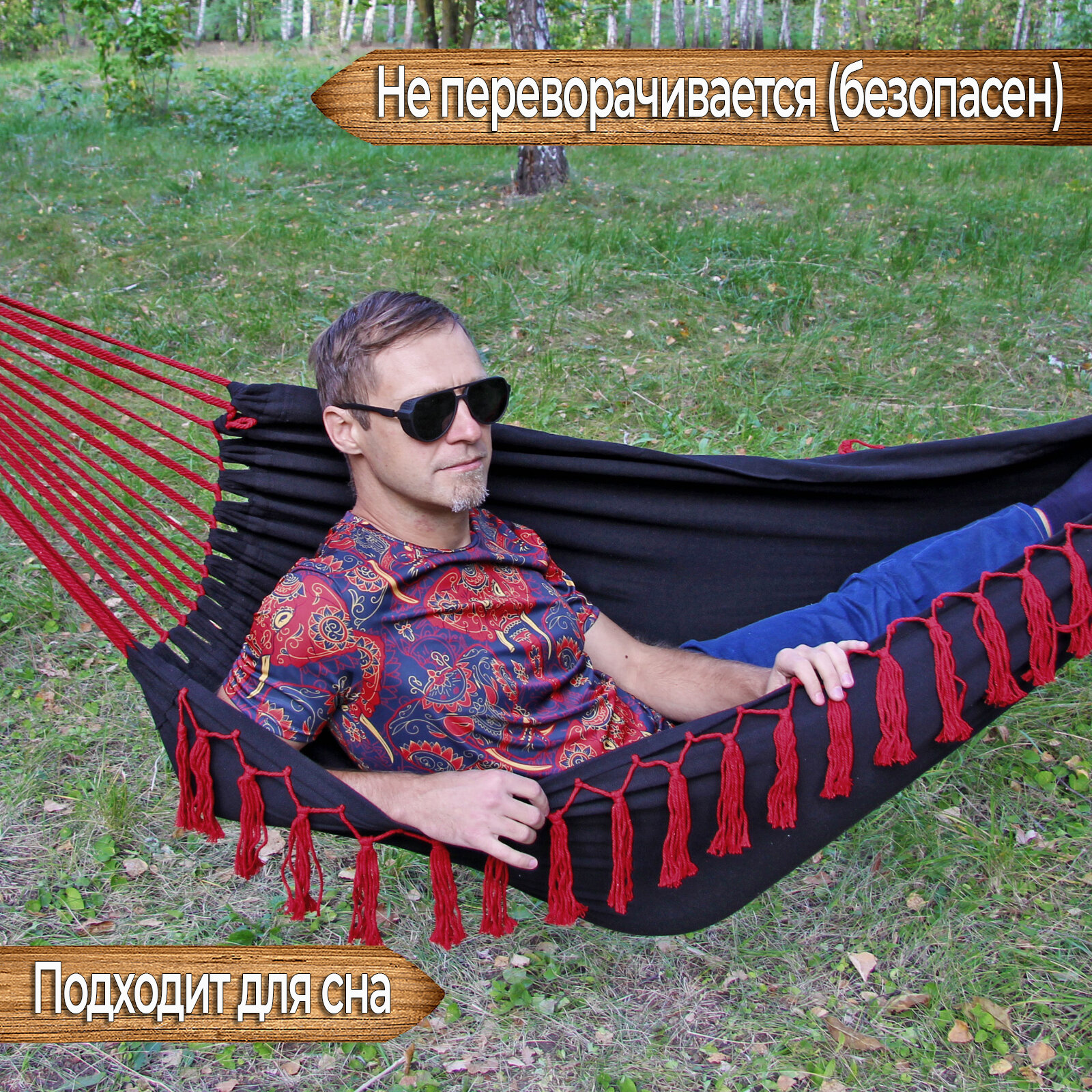 | Плюсы: | хороший гамак, плотный удобный. соответвует стоимости |