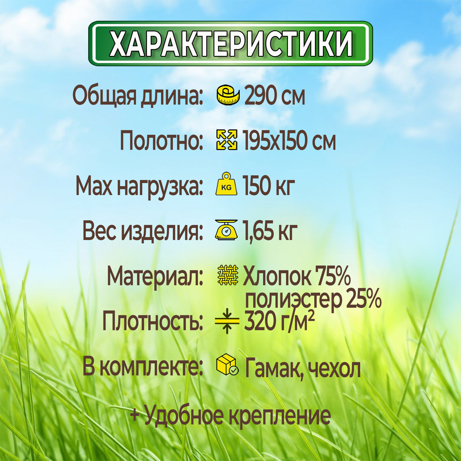 | Материал гамака | хлопок |