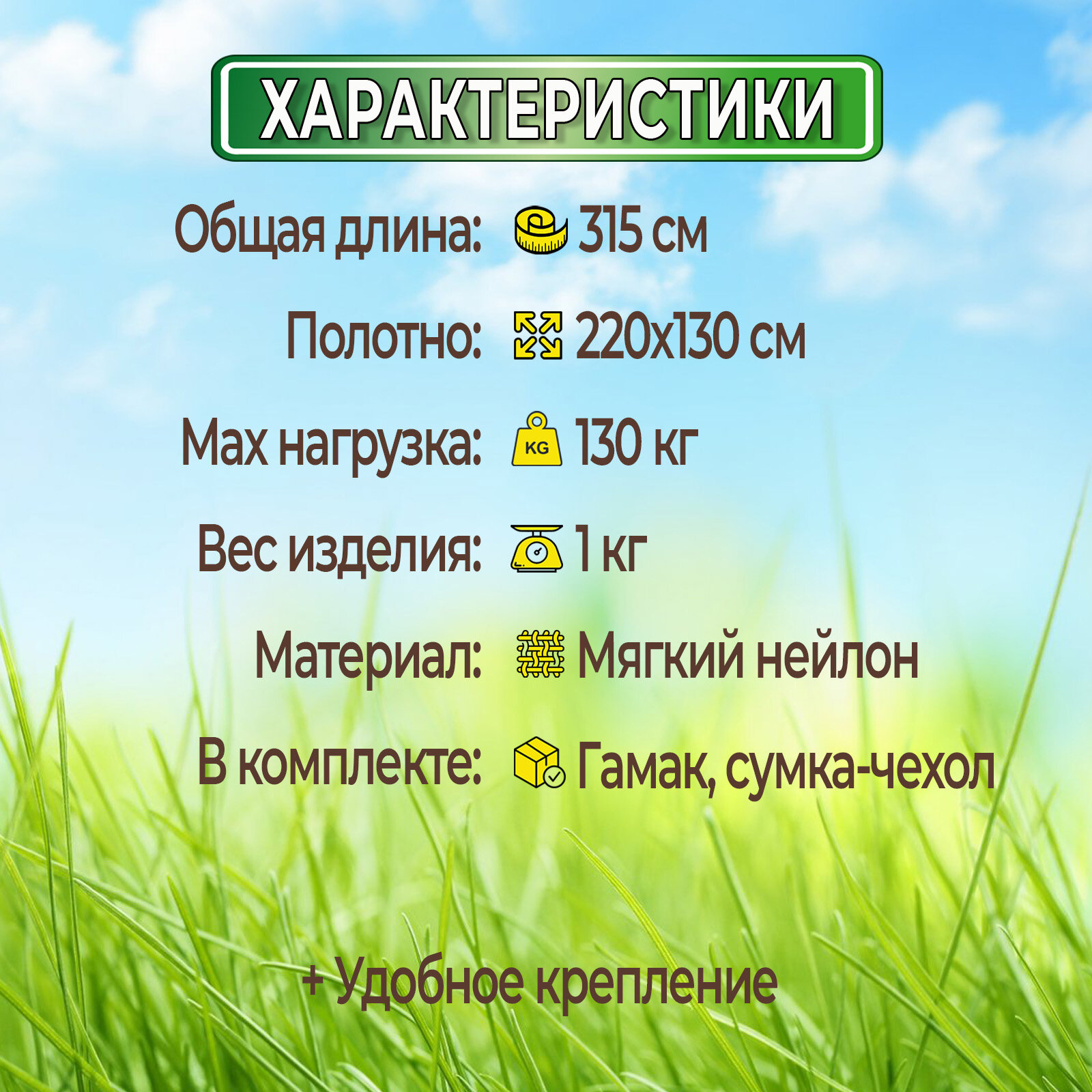 Гамак с креплением (стропы с петлями + s), из нейлона, 220х130 см интересное:
